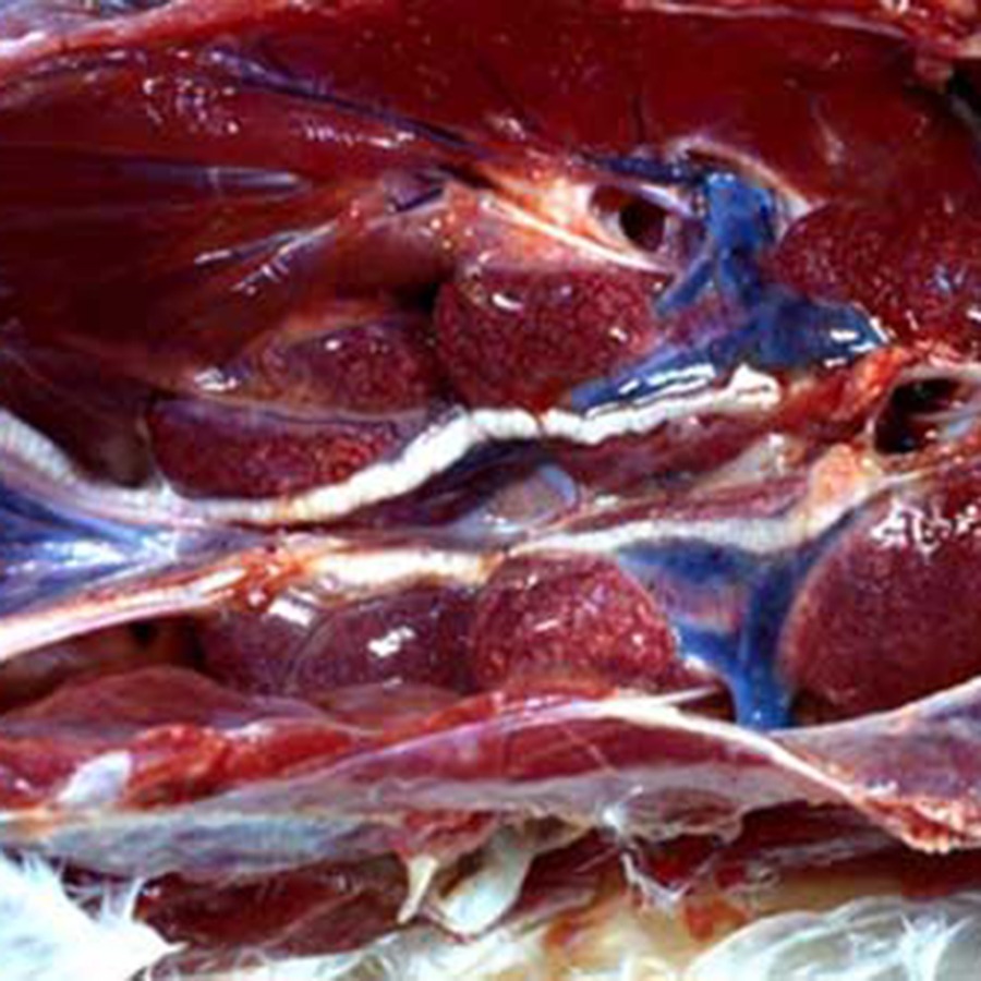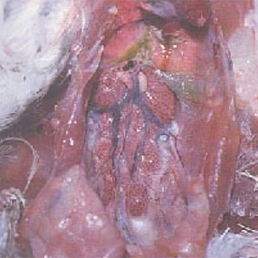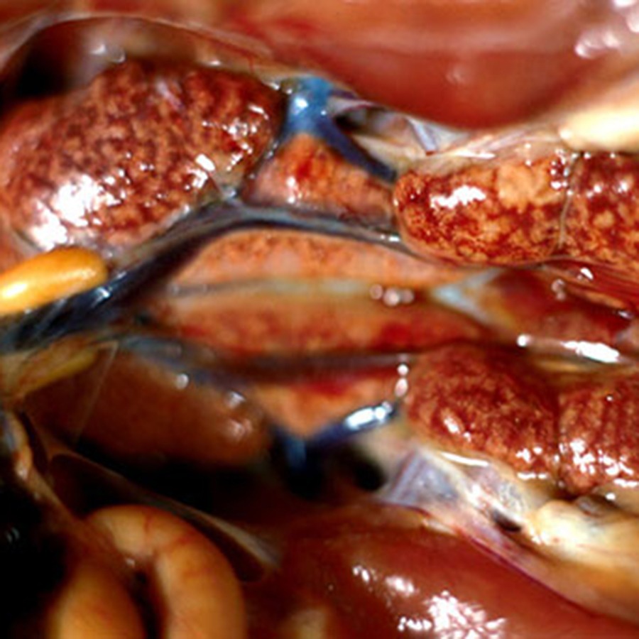- Bệnh tích chủ yếu xảy ra trên đường tiết niệu và sinh dục của gà.
