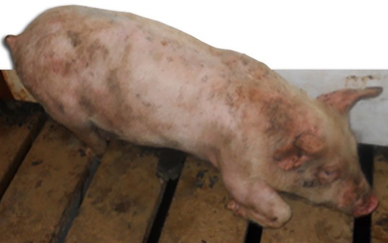 - Heo vàng da, xanh xao, gầy yếu, phát triển kém, vành tai có thể có màu tím bầm.